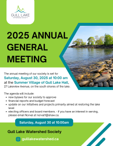 Norval Horner | President of the Gull Lake Watershed Society Presidents Letter to the GLWS Membership – Gull Lake Stabilization The note below comes from